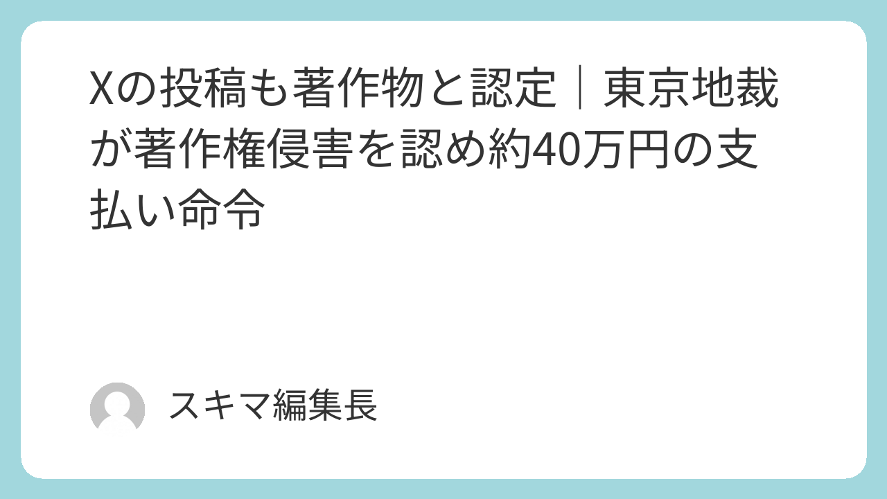 それは──「X(旧Twitter)の投稿は著作物であり、無断転載は著作権侵害に当たる」という判断です。