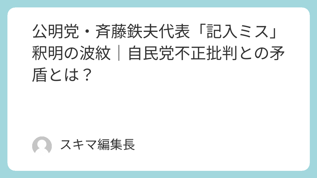 斉藤鉄夫代表の「記入ミス」釈明と「組織的不正」批判は、