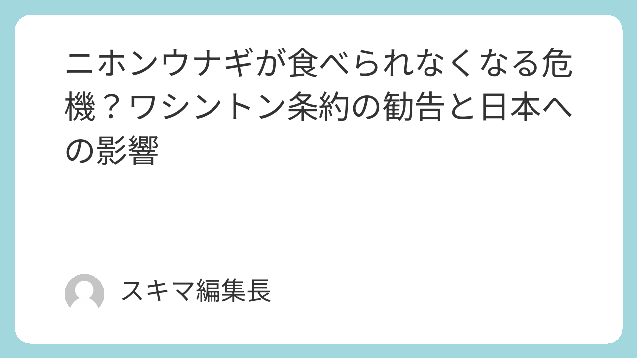今回の勧告は、日本のウナギ文化にとって大きな分岐点になるかもしれません。