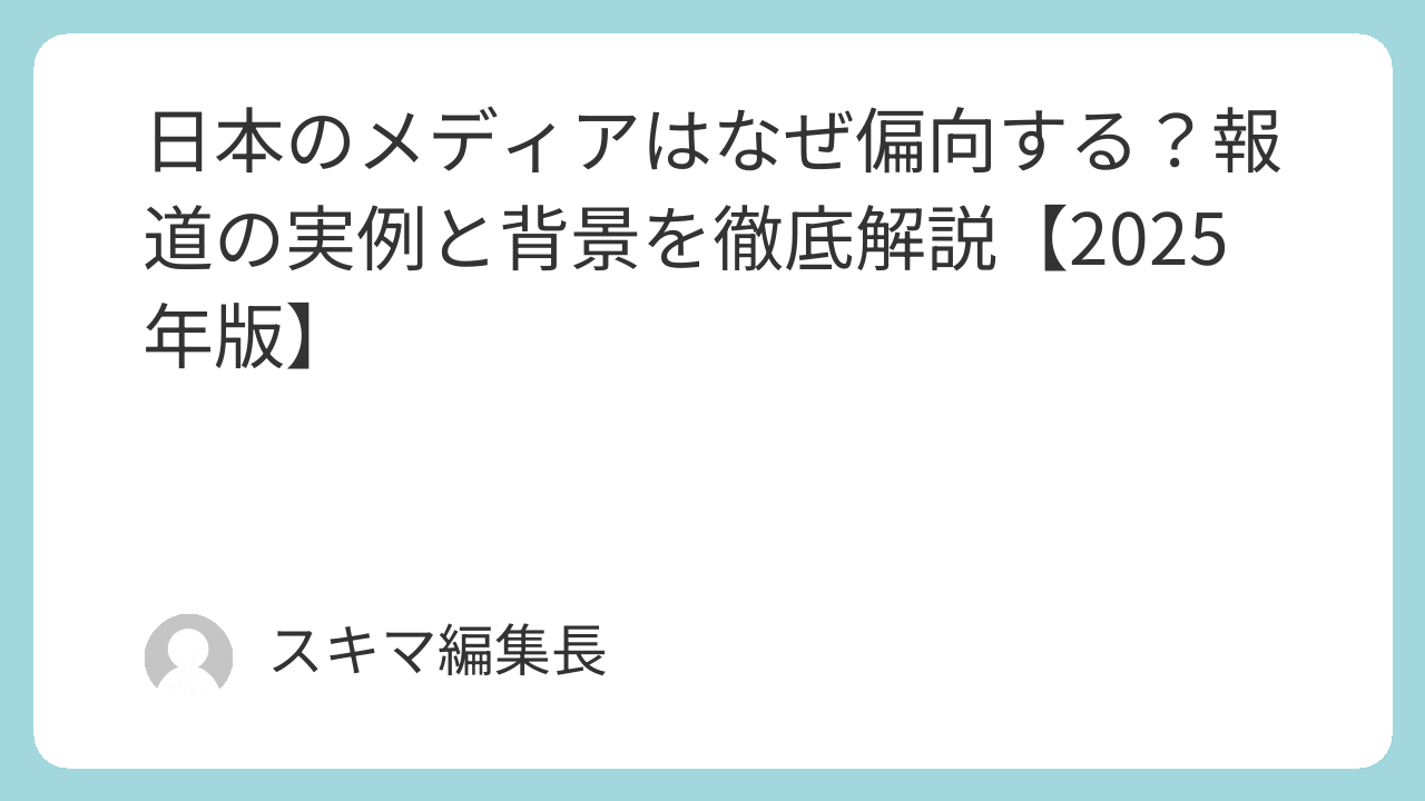 メディアの報道を鵜呑みにせず、自分で考える力を養うための一助となれば幸いです。