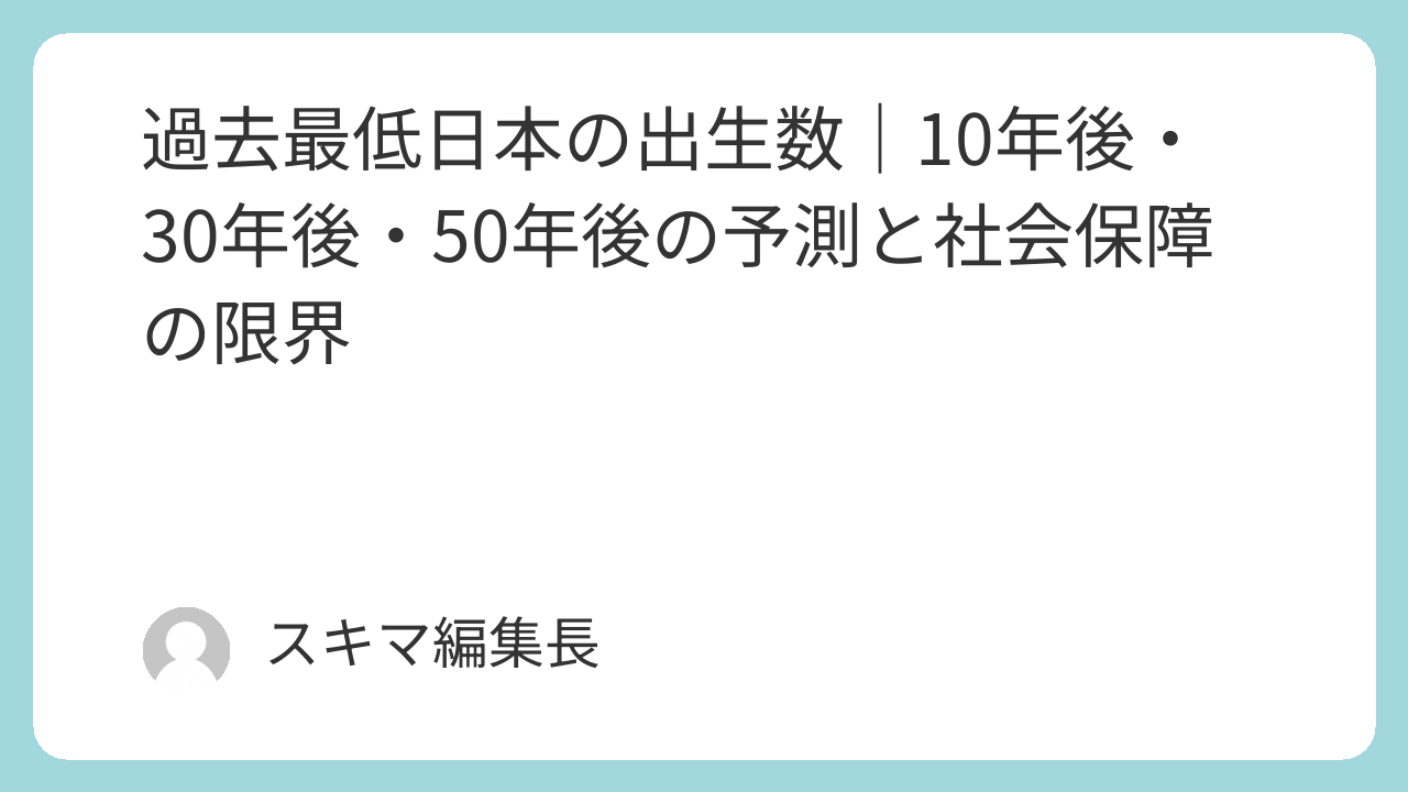 「現役世代+通常の制度改革程度」で維持するのは極めて困難となる。 - 出生数が100万人を長期的に割ると、「支える人口基盤」が徐々に薄くなることで