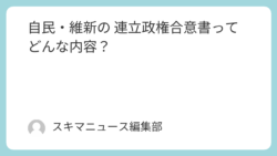 政治経済 自民・維新の 連立政権合意書ってどんな内容? 自民党と維新の連立が決定しました。連立の合意書が維新と自民の共同代表からフルオープンされました。簡単にその内容をご紹介します。合意書の冒頭自民党と日本維新の会は、国内外の厳しい情勢を踏まえ、国家観を共有する政権として協力することで合意しまし... 2025.10.21 政治経済