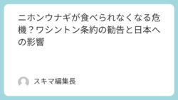 未分類 ニホンウナギが食べられなくなる危機?ワシントン条約の勧告と日本への影響 土用の丑の日にはウナギ、というのが日本の夏の風物詩としてしられています。そんな日本人の食文化に大きな影響を与えるかもしれないニュースが飛び込んできました。ワシントン条約事務局が、ニホンウナギを含むすべての食用ウナギを国際取引の規制対象にする... 2025.10.17 未分類