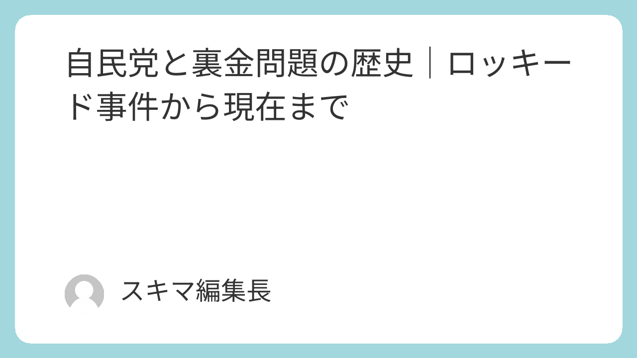 ロッキード事件から現在の政治資金パーティー問題まで、自民党と裏金問題の歴史は戦後日本政治の「負の側面」を如実に表しています。
