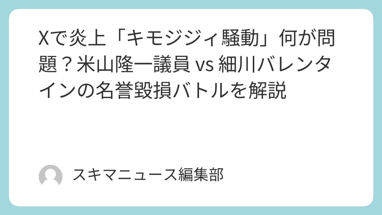 本記事では、騒動の経緯を時系列でまとめ、米山氏の過去買春スキャンダルを振り返りつつ、法的観点から「キモジジィ」発言の是非を解説。