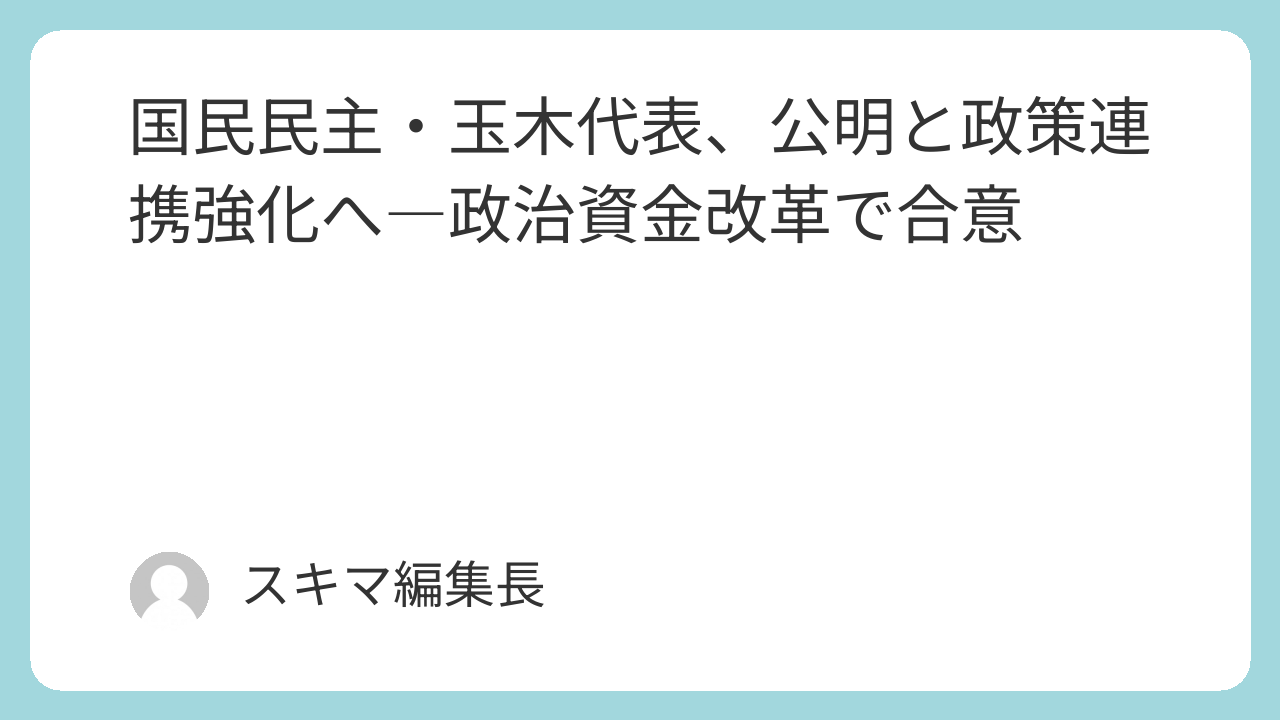 政治とカネの問題で揺れる日本政治において、公明党と国民民主党の政策連携は、新たな政治の流れを生み出すきっかけになるかもしれない。