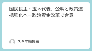 国民民主・玉木代表、公明と政策連携強化へ―政治資金改革で合意