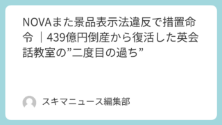 NOVAまた景品表示法違反で措置命令 |439億円倒産から復活した英会話教室の”二度目の過ち”