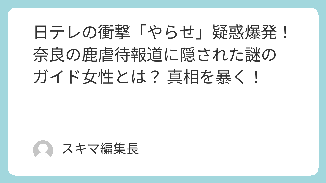 2025年9月29日、日テレの夕方ニュース『news every.』が奈良公園の鹿虐待問題に切り込みました。