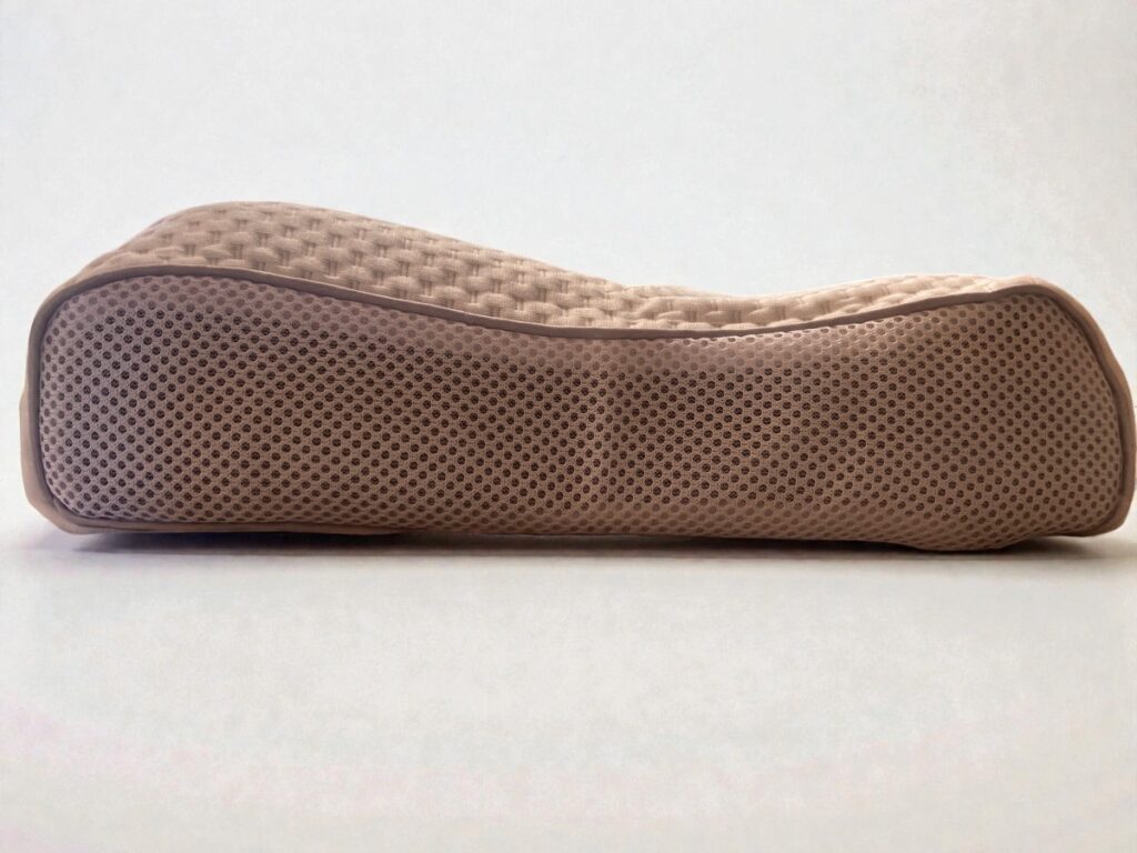 寝返りを打っても枕がズレにくく、横向きになった際、首と肩の間にしっかりとフィットして、頭が落ちる感覚がありません。