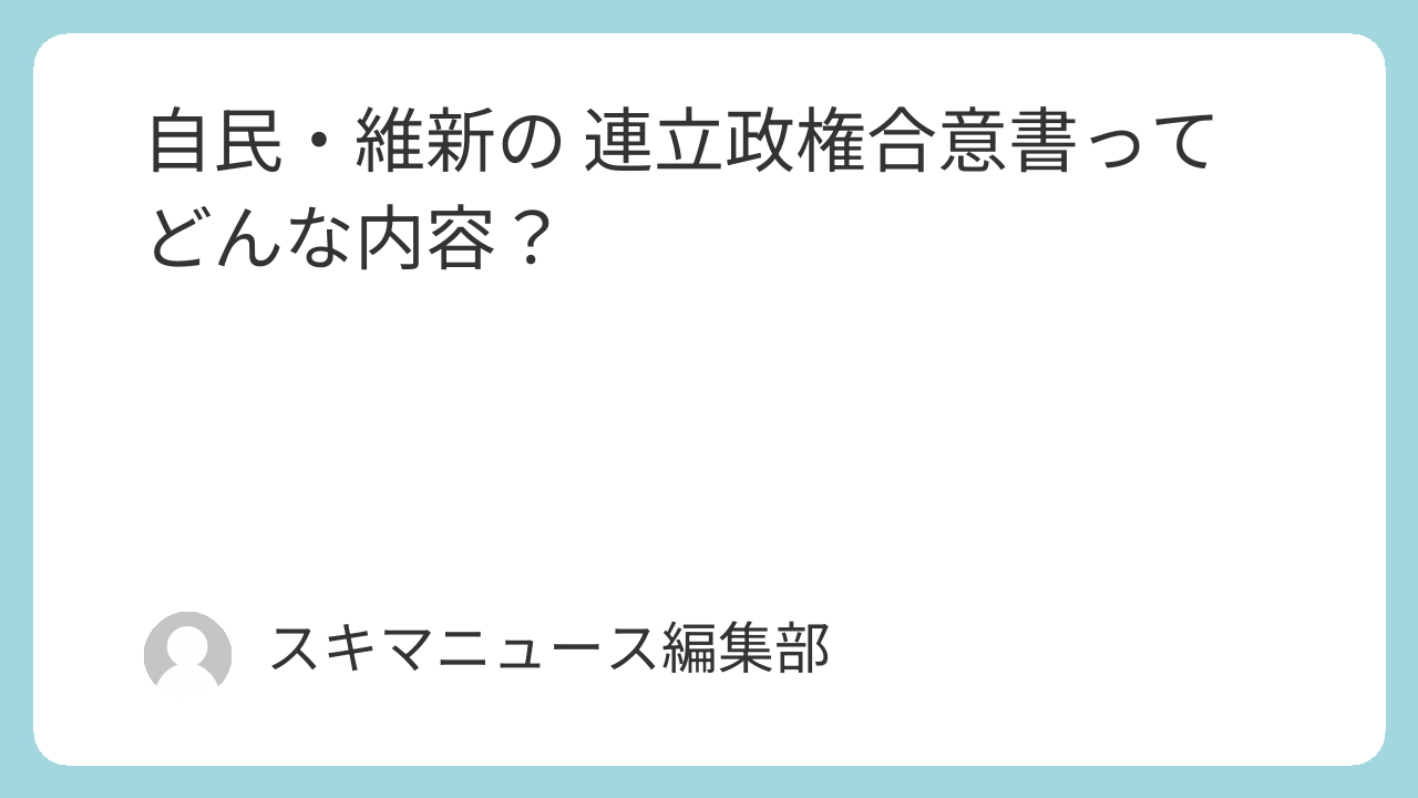 連立の合意書が維新と自民の共同代表からフルオープンされました。