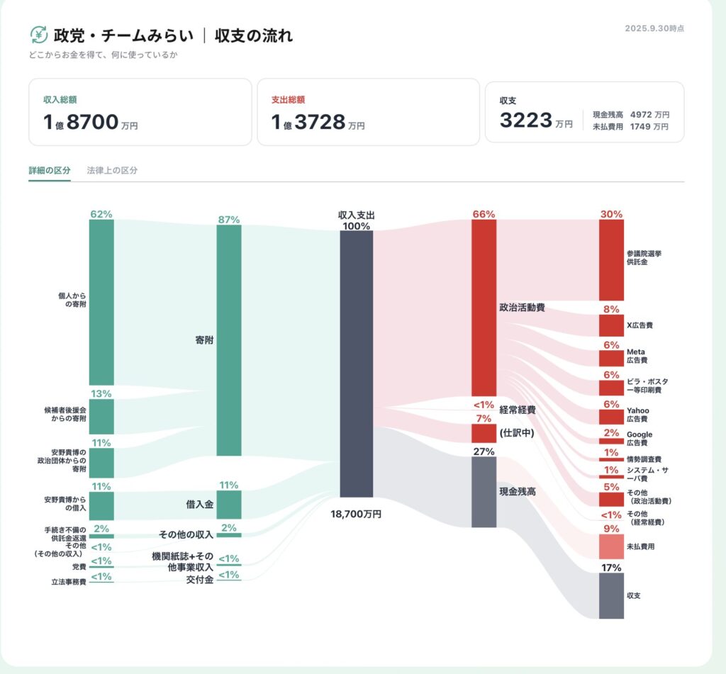 「未来丸見え政治資金」は、政党や議員のお金の流れをオンラインで可視化するシステムです。