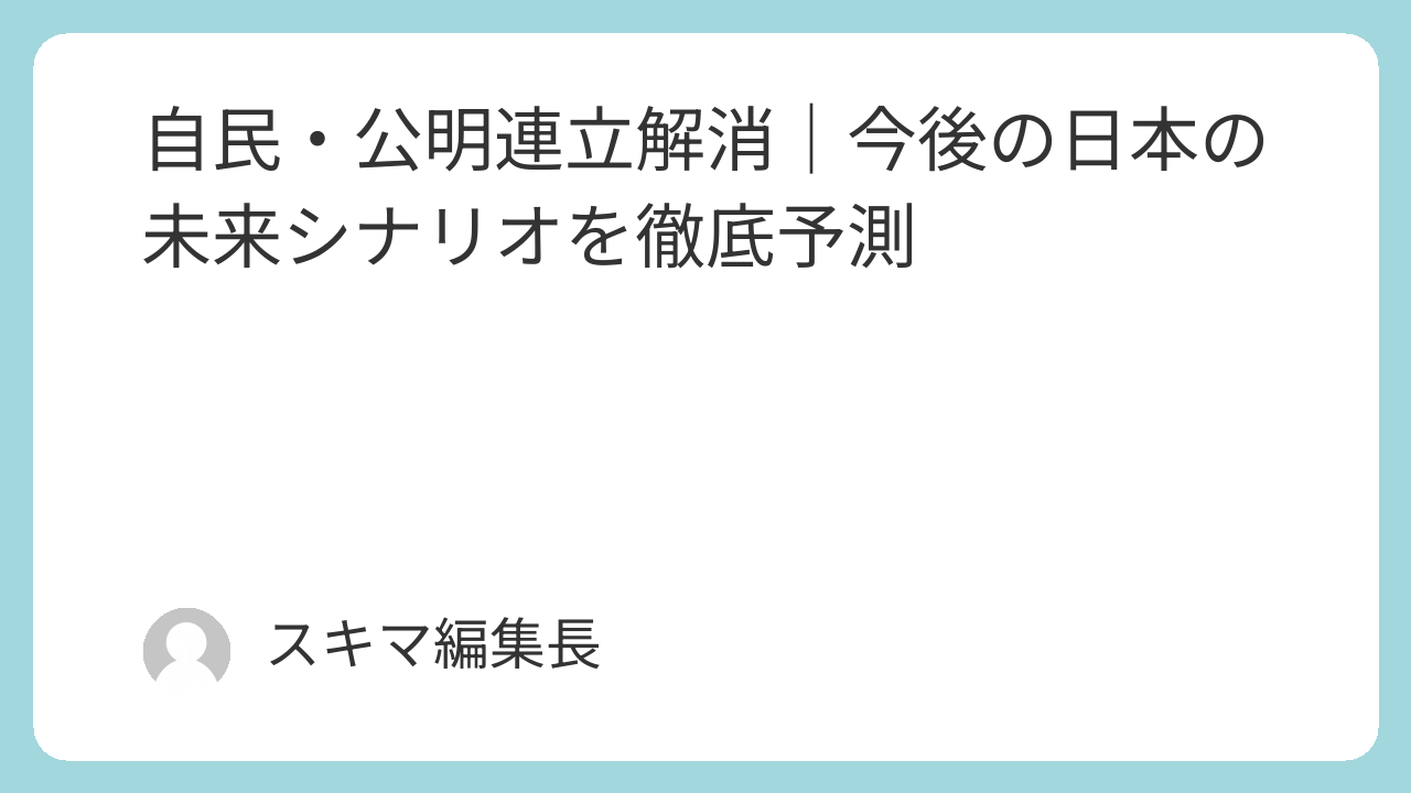 本記事では、連立解消の経緯から、今後予想される4つの未来シナリオ、そして日本政治がどこへ向かうのかを徹底的に分析します。