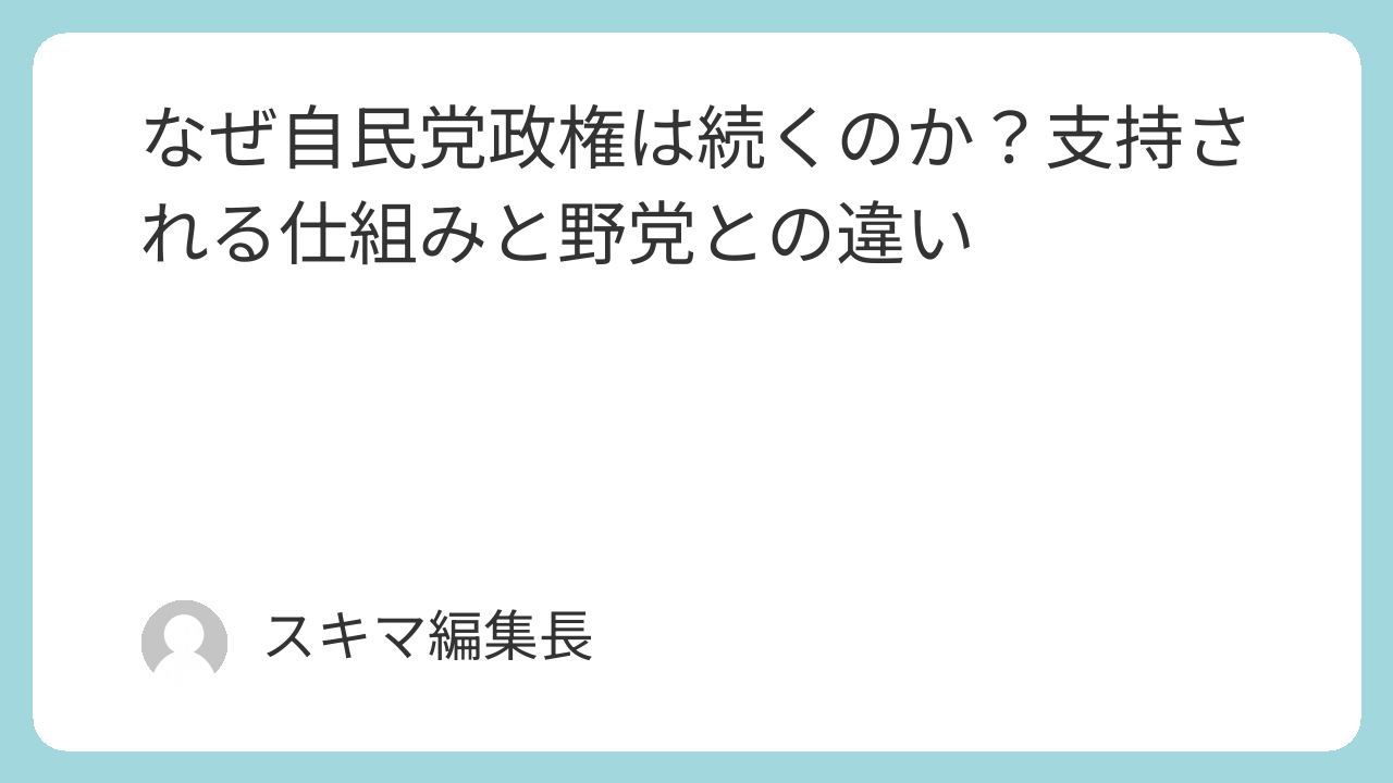 • 「他の選択肢がない」という状況が続く限り、自民党政権は維持されやすい